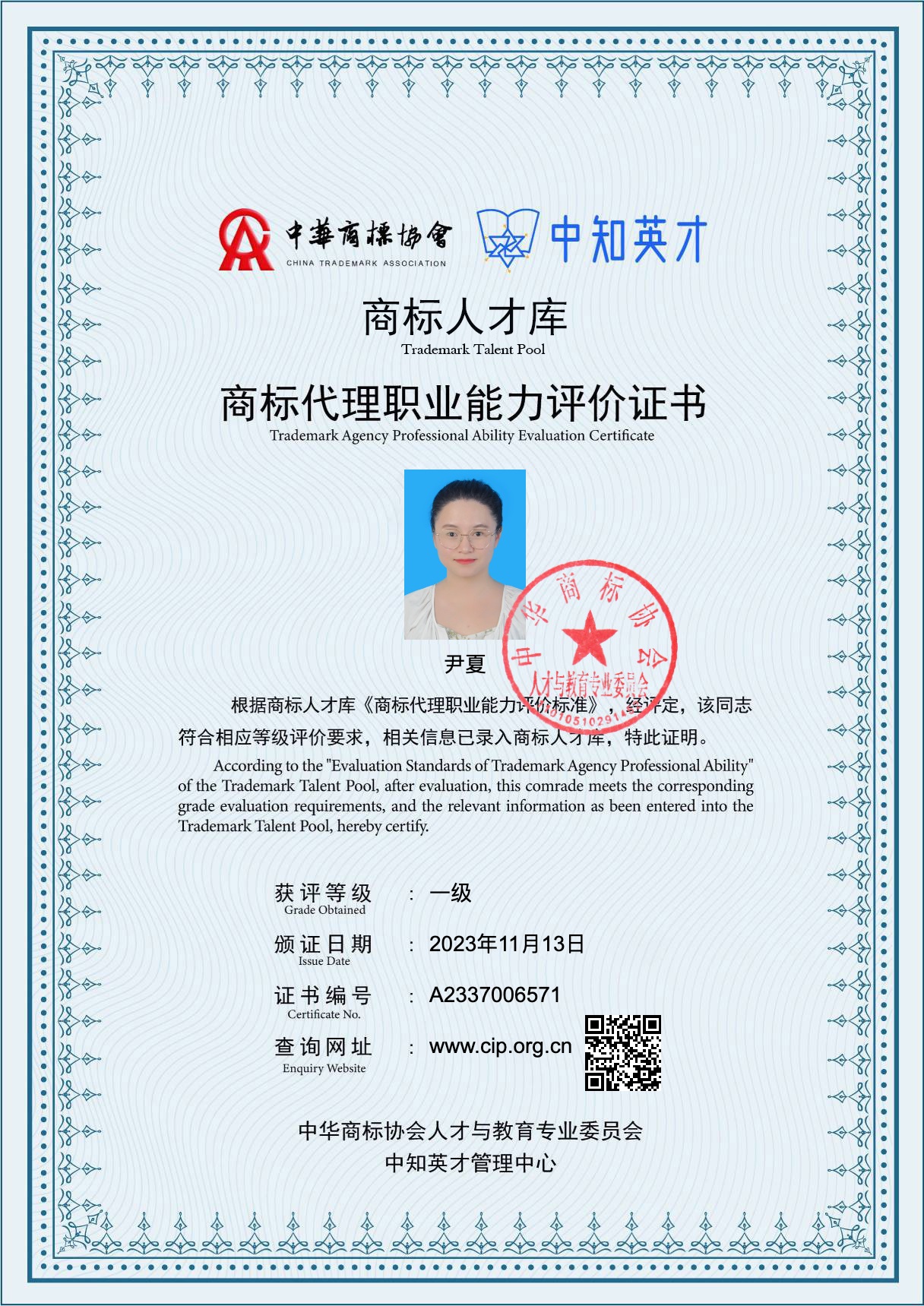 我司合伙人尹夏入選中華商標(biāo)協(xié)會(huì)商標(biāo)人才庫(一級(jí))
